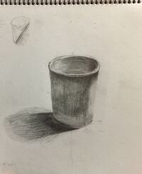 デッサン初心者です 独学です 明るい緑色の紙コップをデッサンしました 添削 Yahoo 知恵袋